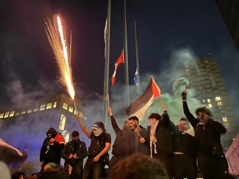 In the initial weeks of the Israeli assault on Gaza, protests in downtown Montréal shut down the streets from the US embassy to the steps of the Israeli embassy. On Friday, October 13, the groups Palestinian Youth Movement, Al Raya Dawson, SPHR Concordia, Academics for Palestine, and Montreal4Palestine organized emergency protests as Israel issued an evacuation order to civilians in Gaza.