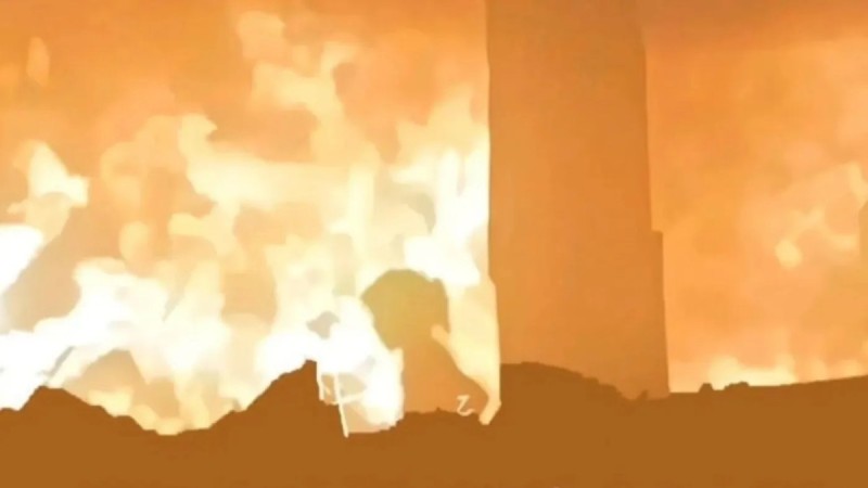 Fire engulfs a classroom at the Fahmi Al-Jargawi School in Gaza City following an Israeli strike, May 26, 2025.