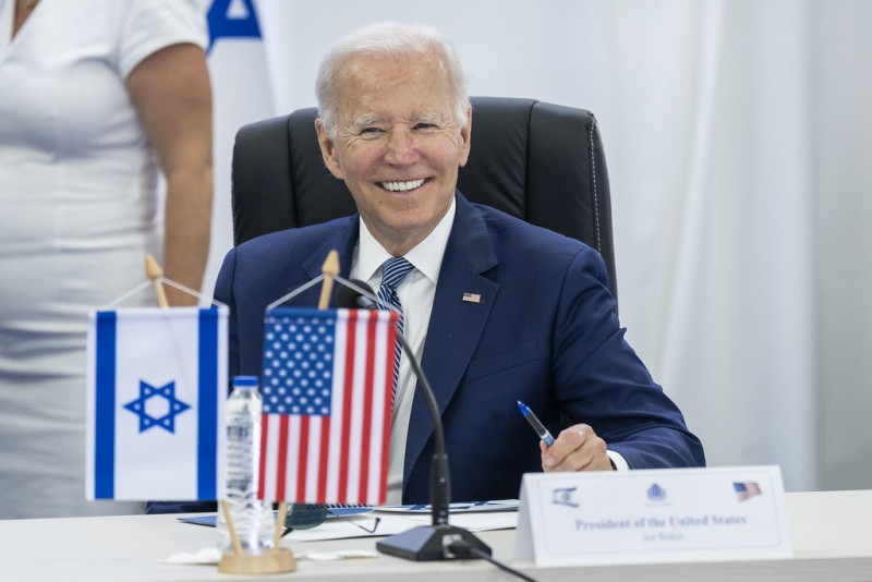 President Joe Biden at Ben Gurion Airport in Tel Aviv, Israel. Photo by Adam Schultz/White House/Flickr.