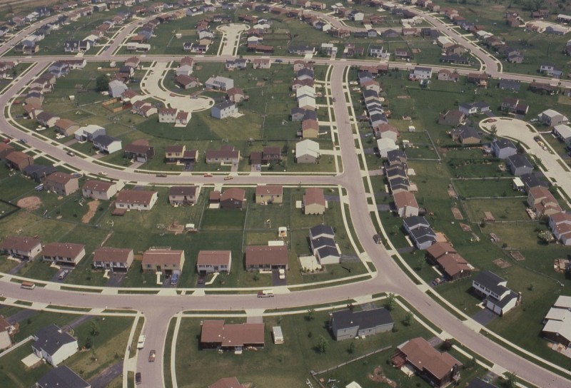 Aerial view of an unidentified newly built housing development subdivision in 1980. Photo courtesy the Columbus Metropolitan Library/Wikimedia Commons.