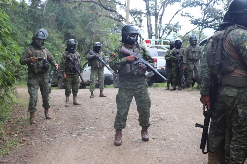Militarization of Palo Quemado to impose Decree 754. Photo courtesy the Confederation of Indigenous Nationalities of Ecuador (CONAIE).