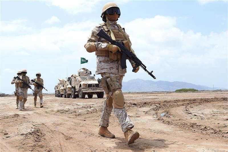 Saudi forces take part in military exercises during a visit by Yemeni Prime Minister Khaled Bahah at a military base in Yemen’s southern embattled city of Aden. Photo by Ahmed Farwan/Flickr.