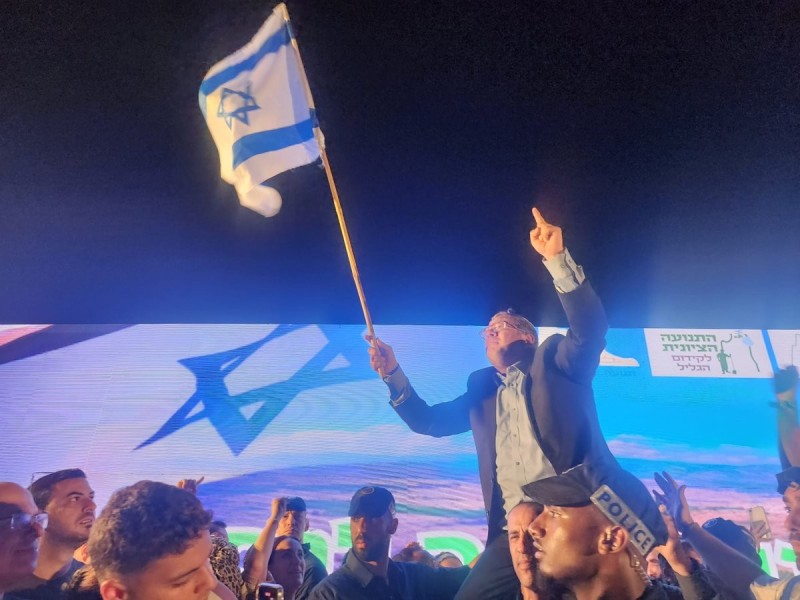 Israeli Minister of National Security Itamar Ben-Gvir at the one-year celebrations of the settlement of Ramat Arbe, an illegal settlement in the Lower Galilee, West Bank. Photo courtesy Itamar Ben-Gvir/X.